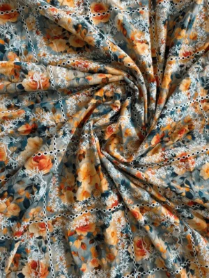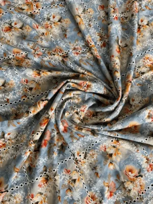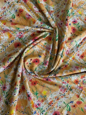 Color: Elegant Steel Grey base adorned with warm Apricot and Golden Yellow floral prints.