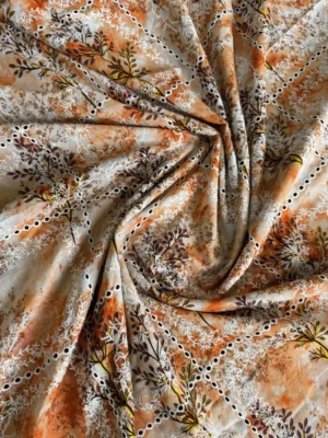 Color: Warm Rust Orange base with elegant autumnal floral and leaf patterns.