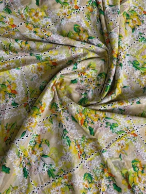 Color: Bright Lemon Yellow base with delicate white and soft green floral patterns.