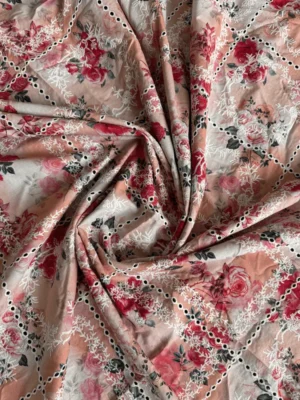 Color: Soft Peach base with elegant floral prints and leafy patterns.